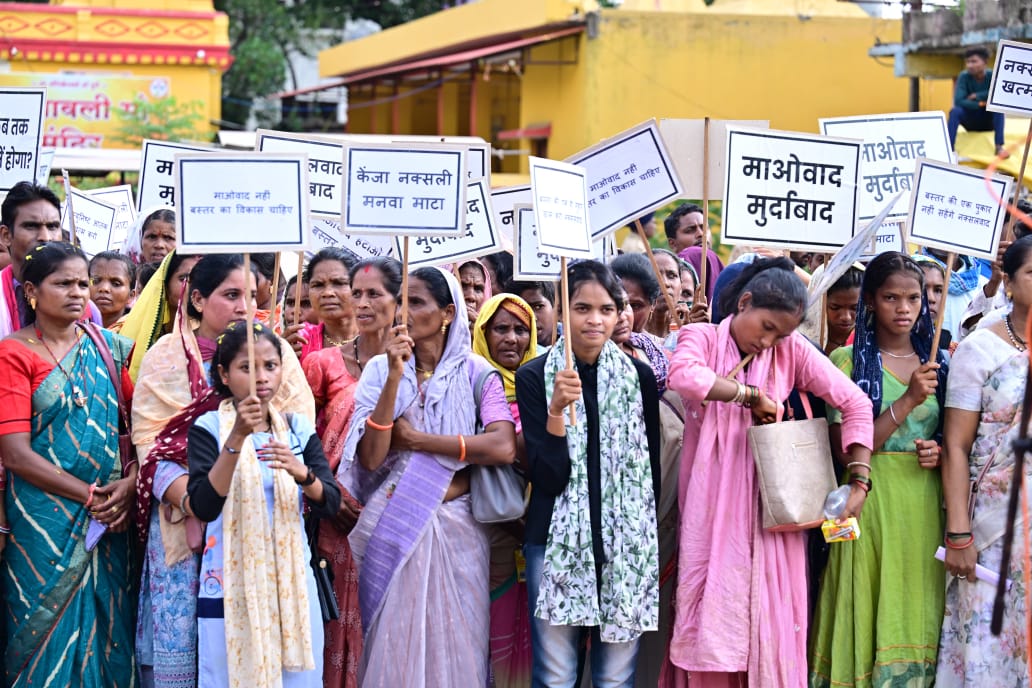 जगदलपुर। बस्तर में सातों जिलों के नक्सल प्रभावित- पीड़ितों द्वारा मंगलवार को सिरहासार भवन से हाता ग्राउंड होते संजय मार्केट से शहीद स्मारक सिरहासार चौक तक रैली का आयोजन कर नक्सलवाद मुर्दाबाद, माओवादी हिंसा नहीं चलेगी, माओवाद नहीं बस्तर का विकास चाहिए, केंजा नक्सली मनवा माटा, कम्युनिष्ठ आतंक खत्म करो जैसे नारा लगाते हुए रैली निकाली। रैली के समापन कार्यक्रम में उप मुख्यमंत्री श्री विजय शर्मा और वनमंत्री श्री केदार कश्यप शामिल हुए।