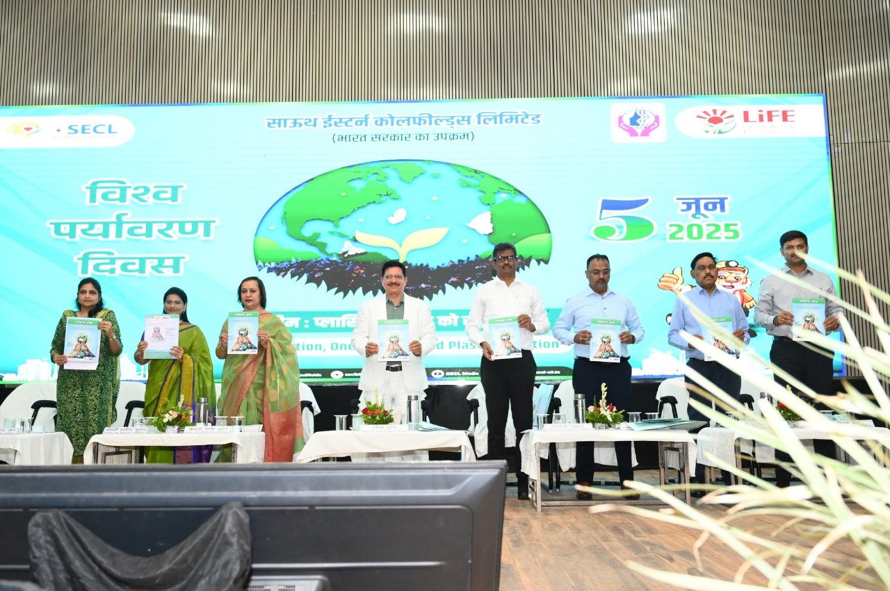 बिलासपुर। एसईसीएल मुख्यालय आडिटोरियम में विश्व पर्यावरण दिवस सोल्लासपूर्ण मनाया गया। इस अवसर पर प्रारंभ में मुख्य अतिथि अध्यक्ष सह प्रबंध निदेशक श्री हरीश दुहन ने निदेशक तकनीकी (संचालन सह योजना-परियोजना), श्री एन. फ्रेंकलिन जयकुमार, निदेशक (एचआर) श्री बिरंची दास, निदेशक (वित्त) श्री डी. सुनील कुमार, मुख्य सतर्कता अधिकारी श्री हिमांशु जैन, श्रद्धा महिला मण्डल अध्यक्षा श्रीमती शशि दुहन, उपाध्यक्षागण श्रीमती हसीना कुमार, श्रीमती विनिता जैन, महाप्रबंधक (पर्यावरण) श्री बी.के. जेना, विभिन्न विभागाध्यक्षों, अधिकारियों-कर्मचारियों की उपस्थिति में पर्यावरण ध्वज फहराया उपरांत कोलइण्डिया काॅरपोरेट गीत बजाया गया।इस अवसर पर पर्यावरण के क्षेत्र में एसईसीएल के प्रयासों को संकलित करती “पर्यावरण दर्पण” पत्रिका का विमोचन मंचस्थ अतिथियों द्वारा किया गया।