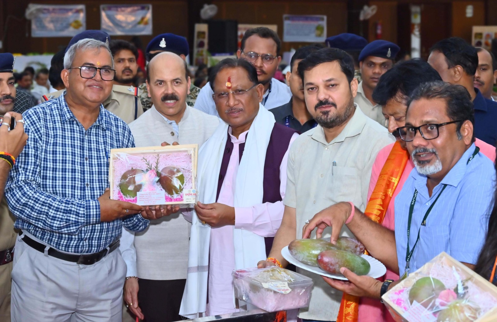 इस अवसर पर विधायक पद्मश्री श्री अनुज शर्मा, छत्तीसगढ़ नागरिक आपूर्ति निगम के अध्यक्ष श्री संजय श्रीवास्तव, इंदिरा गांधी कृषि विश्वविद्यालय के कुलपति डॉ. गिरीश चंदेल, कृषि वैज्ञानिक, छत्तीसगढ़ सहित विभिन्न राज्यों से आये आम उत्पादक किसान और विश्वविद्यालय के विद्यार्थी उपस्थित थे। मुख्यमंत्री सहित अतिथियों ने इस अवसर पर प्रदर्शनी का अवलोकन भी किया। मुख्यमंत्री ने इस मौके पर इंदिरा गांधी कृषि विश्वविद्यालय के ‘न्यूज लेटर‘ का विमोचन किया। आयोजकों द्वारा अतिथियों का उन्नत किस्म के आम के ग्राफ्टेड पौधे देकर सम्मानित किया गया।