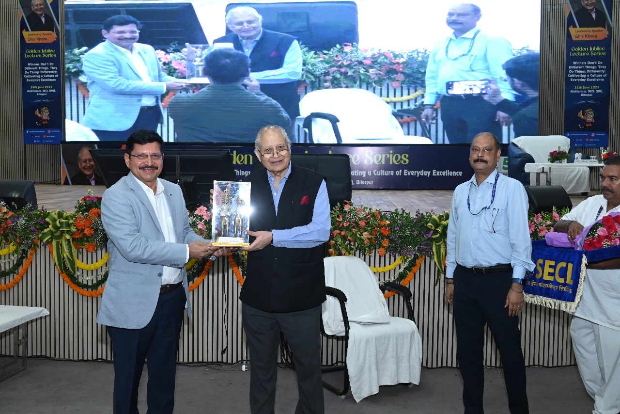 बिलासपुर। कोल इंडिया की स्वर्ण जयंती के उपलक्ष्य में आयोजित गोल्डन जुबली लेक्चर सीरीज़ के अंतर्गत 26 जून 2025 को एसईसीएल मुख्यालय ऑडीटोरियम, बिलासपुर में अंतरराष्ट्रीय ख्यातिप्राप्त लेखक, मोटिवेशनल स्पीकर, उद्यमी एवं विचारक श्री शिव खेरा ने एक अत्यंत प्रेरक एवं विचारोत्तेजक व्याख्यान दिया।