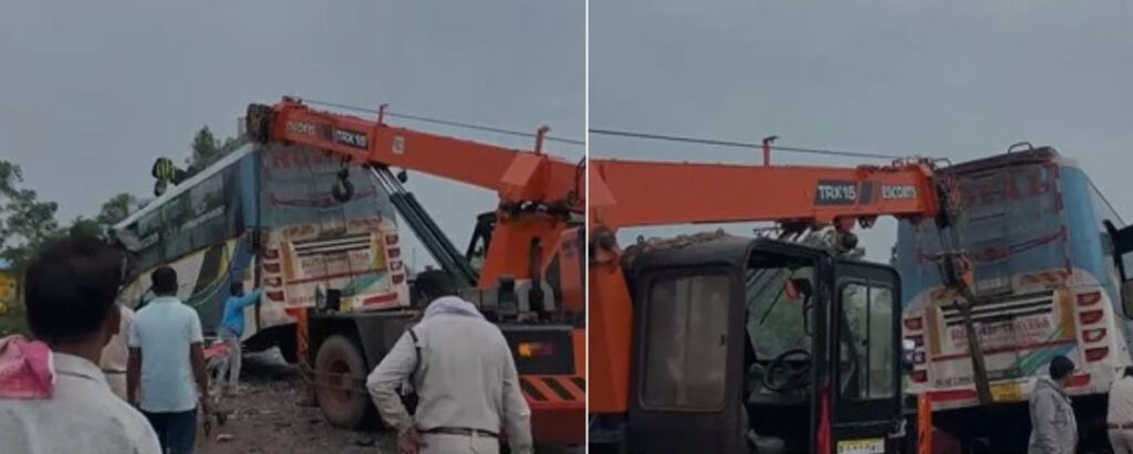 हादसा रायुपर-अभनपुर हाइवे पर हुआ। इस हादसे में एक तेज रफ़्तार स्लीपर बस ने हाइवा वाहन को टक्कर मार दी। हादसा इतना भयंकर था कि, स्लीपर बस बुरी तरह से क्षतिग्रस्त हो गई। इस सड़क हादसे में तीन लोगों की मौत हो गई और आधा दर्जन से अधिक घायल हो गए हैं। हादसे की सूचना मिलते ही अभनपुर पुलिस की टीम मौके पर पहुंची और घायलों को तत्काल इलाज के लिए अस्पताल भेजा है। मृतकों के शव को पोस्टमार्टम के लिए भेज दिया गया है। जानकारी के अनुसार, रॉयल ट्रेवल्स की बस जगदलपुर से रायपुर आ रही थी। इसी दौरान अभनपुर-रायपुर हाइवे पर केन्द्री गांव के पास बस ने हाइवा वाहन को टक्कर मार दी। इस हादसे के समय बस में 20 यात्री सवार थे, जिनमे से तीन की मौत हो गई और आधा दर्जन से अधिक घायल हो गए। बस और हाइवा के बीच टक्कर इतनी भीषण थी कि, दोनों ही वाहन सड़क किनारे जा धंसे।