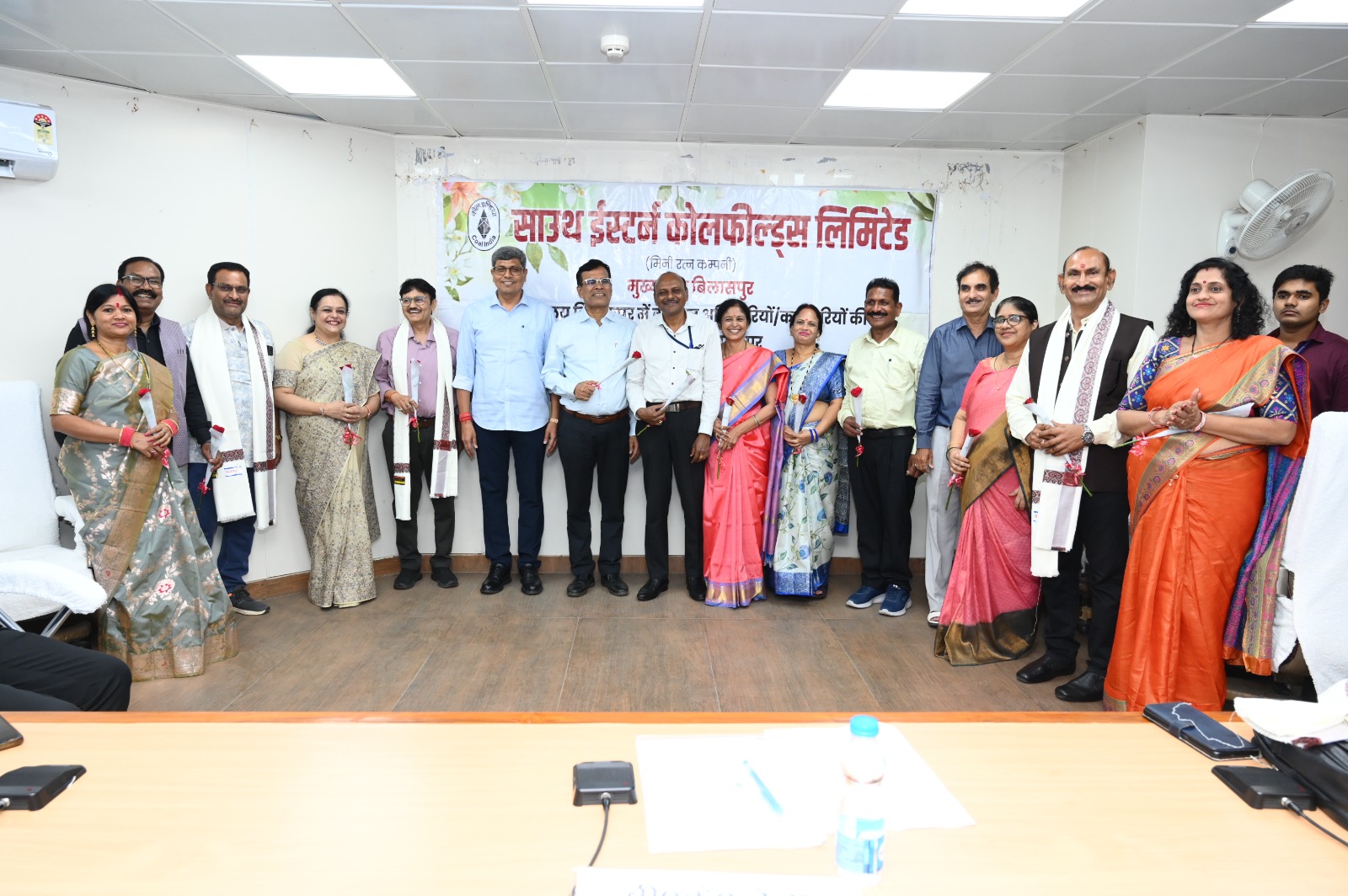 मुख्यालय प्रशासनिक भवन के कान्फ्रेन्स हाल में महाप्रबंधक (पर्यावरण) श्री बी.के. जेना, विभीन्न विभागाध्यक्षों , अधिकारियों-कर्मचारियों, श्रमसंघ पदाधिकारियों की उपस्थिति में श्री मनोरंजन बिस्वाल महाप्रबंधक (वित्त) वित्त विभाग, श्री शरद नायडू सहायक अभियंता विद्युत यांत्रिकी विभाग, श्री दिनेश पाण्डेय कार्यालय अधीक्षक ए-1 सामग्री प्रबंधन विभाग, श्रीमती सजेदा खान कार्यालय अधीक्षक ए-1 वसंत विहार स्वास्थ्य केंद्र, श्री चन्द्रशेखर पाण्डेय मुख्य मान चित्रकार सिविल विभाग, श्री तेजप्रताप कार्यालय अधीक्षक विक्रय विपणन विभाग, श्री राजेश कुमार शुक्ला लेखापाल पीआरबी सेल, श्री विनोद कुमार साहू वरीय लिपिक (राजभाषा) राजभाषा विभाग को सेवानिवृत्ति पर विदाई दी गयी।