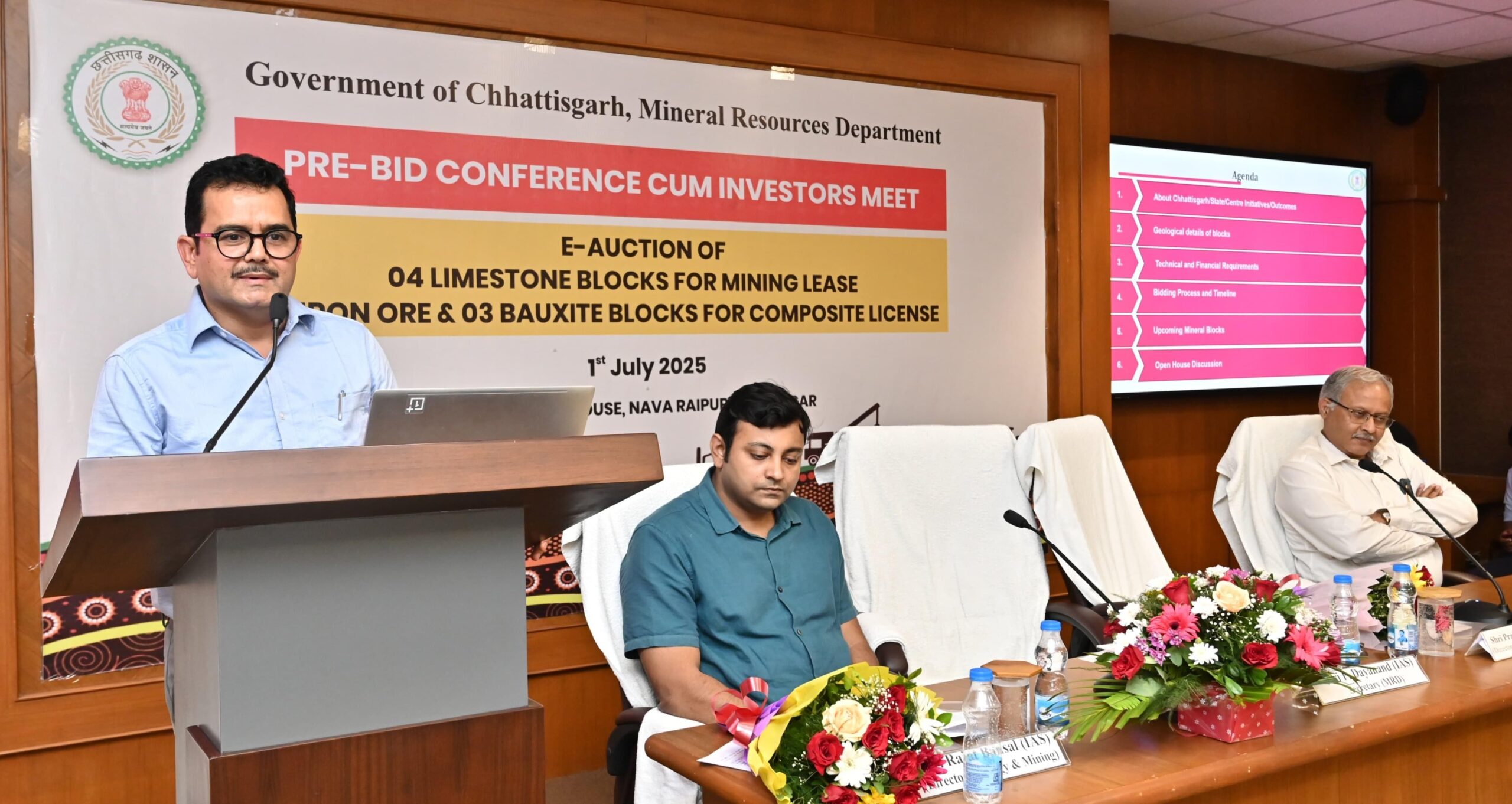 रायपुर । मुख्यमंत्री श्री विष्णु देव साय के मार्गदर्शन में छत्तीसगढ़ में खनिज क्षेत्र में एक महत्वपूर्ण पहल करते हुए चूना पत्थर, लौह अयस्क और बॉक्साइट खनिज के नए ब्लॉकों की ई-नीलामी प्रक्रिया प्रारंभ हो गई है। इसी क्रम में आज नवा रायपुर अटल नगर में निवेशकों के लिए प्री-बिड सम्मेलन का आयोजन किया गया। इस प्री-बिड सम्मेलन का उद्देश्य राज्य की समृद्ध खनिज संपदा को औद्योगिक निवेश के लिए उपलब्ध कराना, स्थानीय विकास को बढ़ावा देना तथा पारदर्शी ई-नीलामी प्रणाली के माध्यम से निवेशकों को आकर्षित करना है।