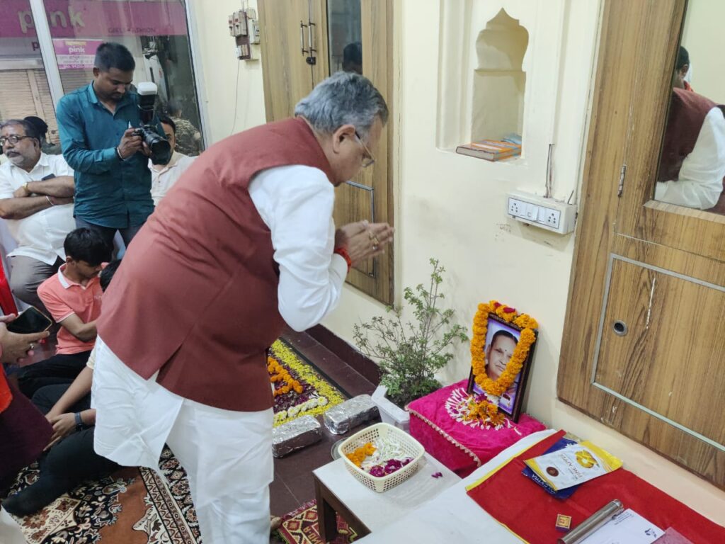 राजनांदगांव । विधानसभा अध्यक्ष एवं क्षेत्रीय विधायक डॉ. रमन सिंह मंगलवार को अपने व्यस्त प्रवास से समय निकलकर भारतीय जनसंघ के वरिष्ठ नेता रामगोपाल लोहिया के कामठी लाइन स्थित निवास पहुंचे और विष्णु प्रसाद लोहिया की धर्मपत्नी श्रीमती मणि देवी लोहिया के निधन पर शोक व्यक्त करते हुए उनके चित्र पर पुष्पांजली अर्पित की।