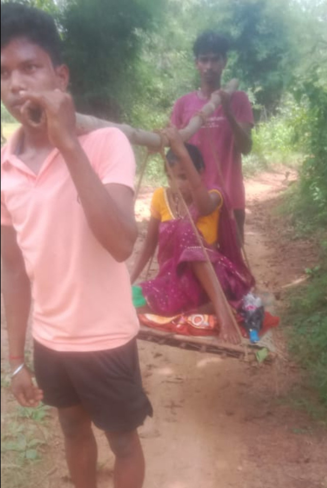 दक्षिण बस्तर के गांवों में सड़क के अभाव से मरीजों को कंधा में उठाकर ले जाना पड़ता है अस्पताल