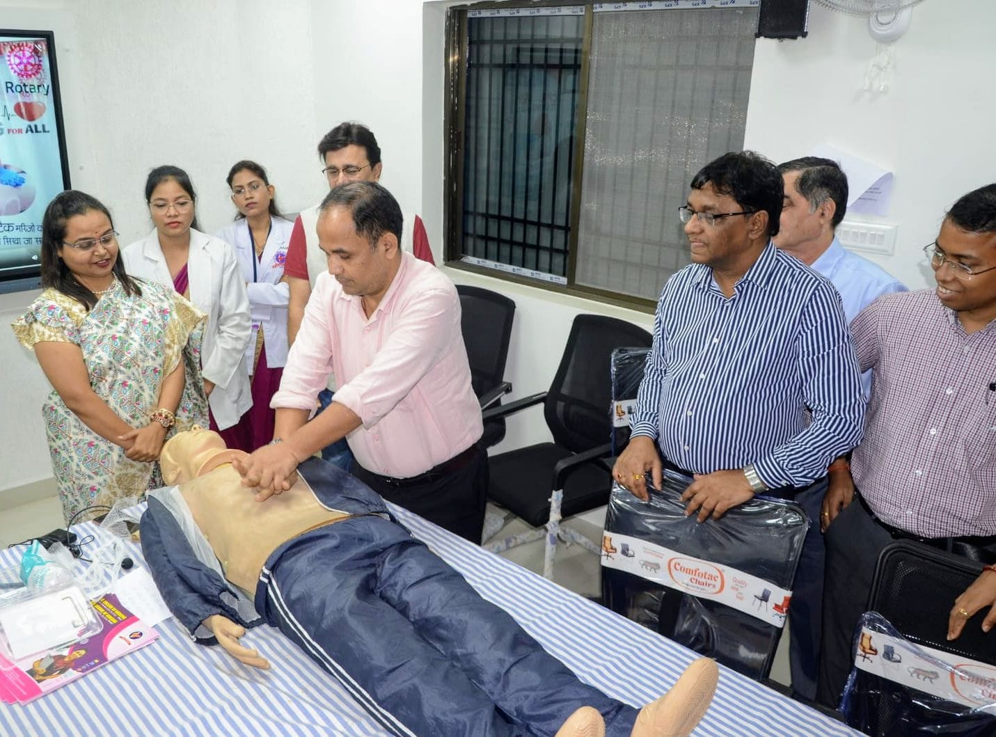रायपुर। कलेक्टर डॉ. गौरव सिंह के निर्देशानुसार कलेक्टोरेट स्थित बीपीओ सेंटर, मल्टीलेवल पार्किंग में रेडक्रॉस के सहयोग और छत्तीसगढ़ कॉलेज ऑफ नर्सिंग के तकनीकी सहयोग से “प्रोजेक्ट सुरक्षा” के तहत जिला स्तरीय अधिकारियों हेतु आपातकालीन स्थिति में प्राथमिक उपचार और जीवन रक्षक उपायों पर विशेष प्रशिक्षण सत्र आयोजित किया गया। कार्यक्रम में CPR की तकनीक एवं फर्स्ट एड के ज़रूरी एवं प्रभावी बचाव के तरीके विस्तार से बताए गए, ताकि ज़रूरत के समय त्वरित और सटीक सहायता दी जा सके।