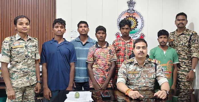 सुकमा। मुखबिर के आसूचना पर थाना जगरगुण्डा से जिला बल एवं कैम्प नरसापुरम से ई/226 वाहिनी सीआरपीएफ एवं सीडी/74 वाहिनी सीआरपीएफ का बल की संयुक्त पार्टी ग्राम अचकट की ओर एरिया डोमिनेशन/नक्सली आरोपियों की धरपकड़ हेतु रवाना हुए थे। अभियान के दौरान ग्राम अचकट के जंगल टेकरी में 5 नक्सलियों हेमला मुया पिता स्व. बण्ड़ी उम्र लगभग 35 वर्ष निवासी दोड़हिड़मा किसकेपारा थाना जगरगुण्डा कवासी नंदा पिता स्व. नंदा उम्र 32 वर्ष निवासी दोड़हिड़मा किसकेपारा थाना जगरगुण्डा, हेमला देवा पिता स्व. पीसा उम्र लगभग 45 वर्ष निवासी दोड़हिड़मा किसकेपारा थाना जगरगुण्डा, मुचाकी जोगा पिता हुंगा उम्र 20 वर्ष निवासी दोड़हिड़मा किसकेपारा थाना जगरगुण्डा, वेट्टी भीमा पिता हड़मा उम्र 20 वर्ष निवासी दोड़हिड़मा किसकेपारा थाना जगरगुण्डा जिला सुकम को गिरफ्तार कर पूछ-ताछ में प्रतिबंधित नक्सली संगठन बेड़मा आरपीसी अन्तर्गत हिड़मा गांव के मिलिशिया सदस्य के पदों पर कार्य करना बताये गये।