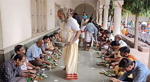 रायपुर। शिवरीनारायण मठ के पूर्वाचार्य श्री महन्त लाल दास जी महाराज को श्रावण शुक्ल दशमी तिथि पर याद किया गया। उनकी पुण्य स्मृति में परंपरागत रूप से ब्राह्मण भोजन का आयोजन किया गया जिसमें नगर के सभी विप्रजन सम्मिलित हुए। इस अवसर पर भगवान की विशेष पूजा अर्चना की गई। भोग प्रसाद बनाने में महामंडलेश्वर राजेश्री महन्त रामसुन्दर दास जी महाराज ने स्वयं हाथ बटाया। दोपहर 12:30 बजे भगवान की विशेष पूजा अर्चना की गई। सभी ब्राह्मणों को भोजन के पश्चात तिलक लगाकर विदाई दी गई। इस कार्यक्रम में संत श्री रामगोपाल दास जी महाराज विशेष रूप से उपस्थित हुए।