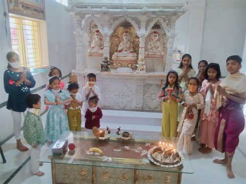 ट्रस्टी निलेश गोलछा ने बताया कि ट्रस्ट द्वारा भावी पीढ़ी को संस्कारित करने रात्रि धार्मिक पाठशाला का भी संचालित हो रही है। ट्रस्टी डॉ योगेश बंगानी ने बताया कि आज 118 बच्चों को जिनप्रतिमा के 9 अंगों के पूजन की विधि की जानकारी देकर नवांगी पूजा कराई गई , सर्वप्रथम परमात्मा के अंगूठे की पूजा करते हुए दोहा जल भरी सम्पुट पत्र मां , युगलिक नर पूजन , ऋषभ चरण अंगुठडो दायक भवी जल अंत भावपूर्वक बोला जाता है। जैन धर्म में ही भगवान की प्रतिमा में भक्तों द्वारा सीधे पूजन का विधान है। बच्चों को पुरस्कृत किया गया। महेन्द्र कोचर ने बताया कि चारों दादागुरुदेव के सम्मुख विधिपूर्वक गुरुवंदन की प्रक्रिया सिखाई गई , बच्चों ने दादागुरुदेव का विधिपूर्वक खमासमना देकर वन्दन किया। अंत में दादागुरुदेव इक्तिसा का पाठ किया गया।