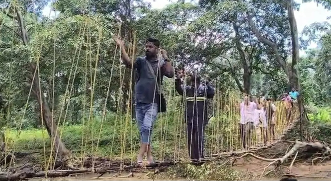 दरअसल यह पुल बीजापुर जिले के धुर नक्सल प्रभावित गंगालूर इलाके के पालनार-तोड़का क्षेत्र में बनाया गया है। इसके पहले ऐसे इलाको में नक्सलियों की मदद से ग्रामीण इस तरह के पुल तैयार किया करते थे । वहीं पालनार और तोड़का इलाके को जोडऩे के लिए पुल का निर्माण कार्य जारी है। फिलहाल सीआरपीएफ के जवानों ने झूला पुल का निर्माण कर ग्रामीणों और शिक्षकों को बड़ी राहत दी है।