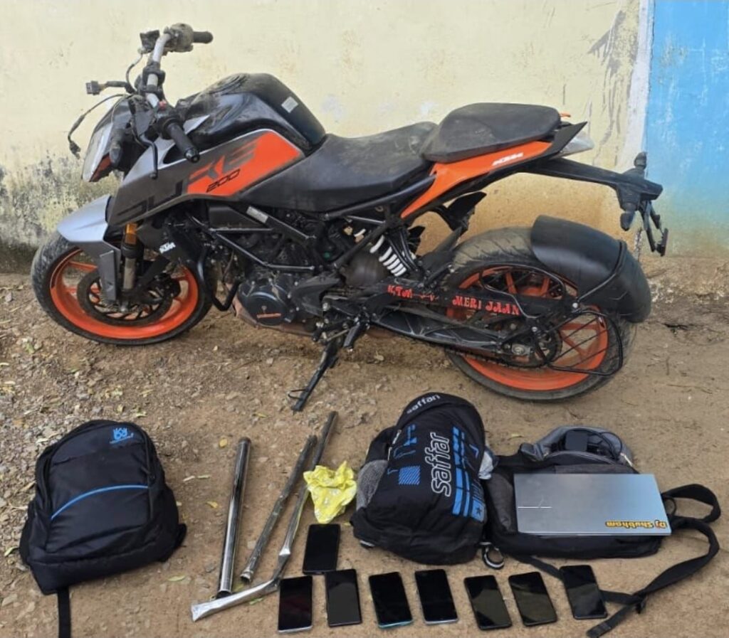 पुलिस ने गिरफ्तार आरोपियों के नाम और उम्र निखिल टंडन पिता राकेश टंडन उम्र 18 साल 3 माह,मनीराम गोंड पिता छोटेबाबू गोंड उम्र 19 साल, नरेश यादव पिता फिरतू यादव उम्र 19 साल 3 माह,रोशन टंडन पिता राकेश टंडन उम्र 19 साल 4 माह चारो निवासी राहौद थाना शिवरीनारायण निवासी राहौद वार्ड नं. 1 थाना शिवरीनारायण थाना शिवरीनारायण जिला जांजगीर चांपा,आयुष रात्रे पिता अयोध्या रात्रे उम्र 18 साल 11 माह निवासी राहौद डुडगा थाना पामगढ जिला जांजगीर चांपा2 विधी के विरूद्ध संघर्षरत बालक सन्नी तथा (मुठभेड़ मे पैर मे गोली लगी है ) रामनाथ बताया है। पुलिस ने गिरफ्तार आरोपियों के पास से स्टील का राड – 4 नग,डण्डा 02 नग, बेल्ट 1 नग,KTM मोसा 2 नग,सीडी डिलक्स मोसा 1 नग,हीरो स्कूटी जूम एक्स टे 1 नग आरोपियों के मोबाईल -7 नग, लूटे गये मोबाईल 3 नग ,नगदी रकम 9000 जप्त किये ।