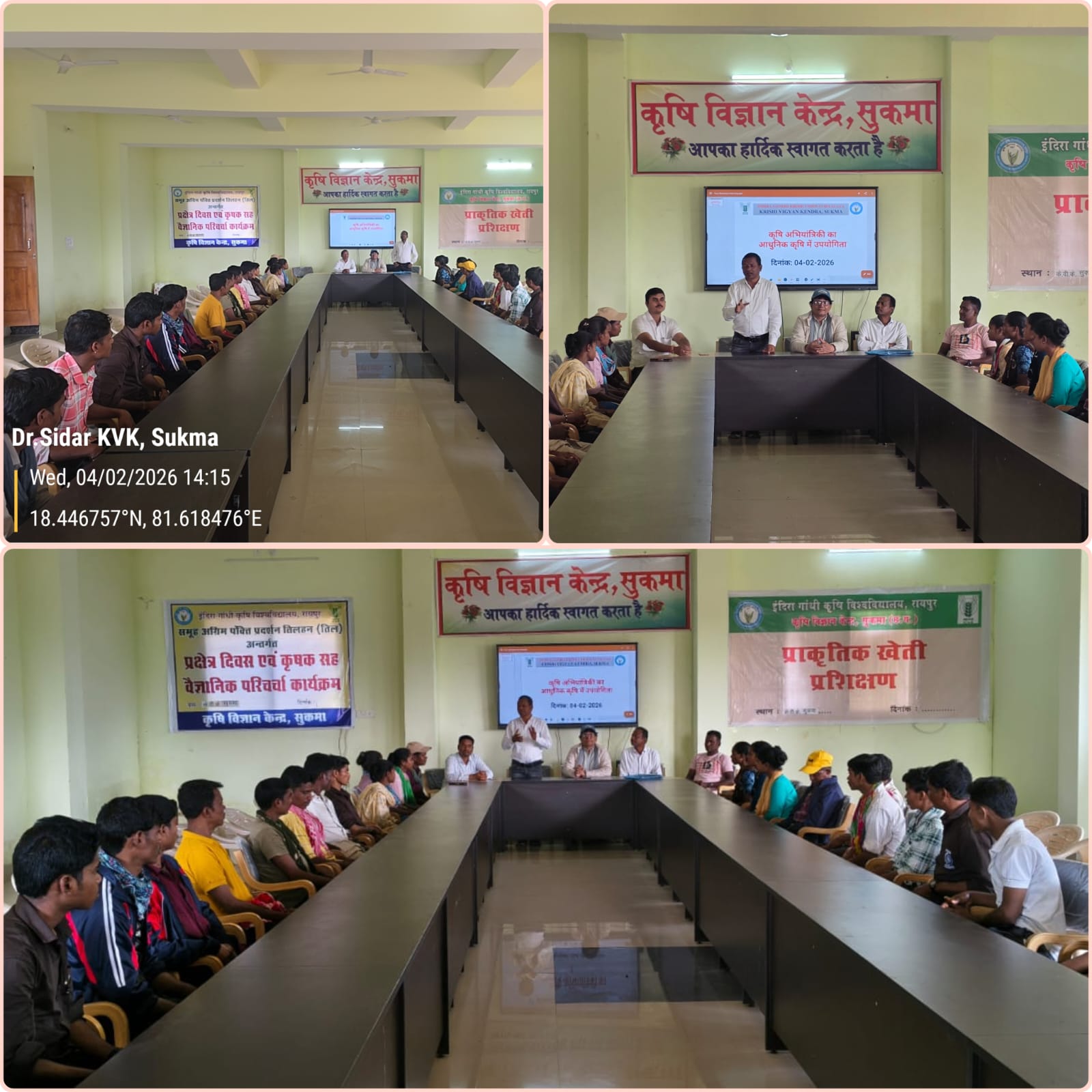 यह प्रशिक्षण कार्यक्रम 4 से 27 फरवरी के बीच कुल 12 कार्य दिवस मे क़ृषि विज्ञान केंद्र एवं क़ृषि विभाग के सयुंक्त तत्वाधान मे क़ृषि विज्ञान केंद्र मे आयोजित किया जाएगा, जिसमें थ्योरी ज्ञान के साथ साथ मक्का, मूंग, सब्जियाँ की बुबाई कार्य के साथ साथ कृषि यन्त्रों का समुचित उपयोग, कीड़े बीमारी का उचित नियंत्रण, प्राकृतिक खेती, मशरुम उत्पादन एवं मछलीपालन पर विस्तार से प्रायोगिक प्रशिक्षण भी दिए जायेंगे साथ ही जिले के प्रगतिशील किसानों के खेतों मे भ्रमण कराया जायेगा, इसी तारताम्य में आज कार्यक्रम के प्रथम दिवस पर प्रतिभागियों से औपचारिक परिचय उपरांत कृषि विज्ञान केंद्र की गतिविधियों, कार्यप्रणाली एवं भूमिका के संबंध में विस्तारपूर्वक जानकारी प्रदान की गई साथ कृषि विभाग के वरिष्ठ क़ृषि विस्तार अधिकारी श्री सुरेश कुमार बेक द्वारा विभाग की योजनाओं की जानकारी दी गईं