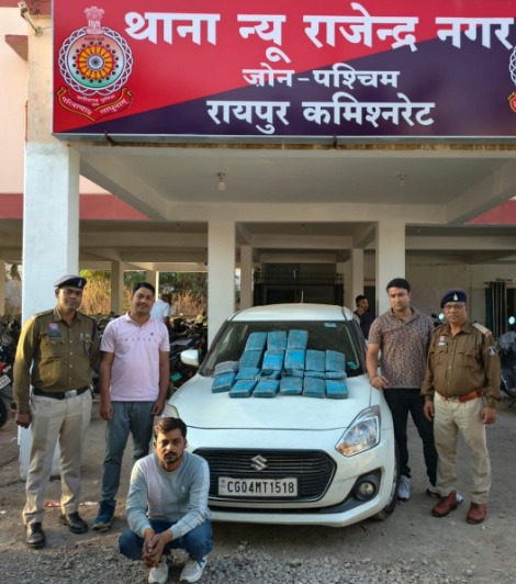 रायपुर। रायपुर पासिंग स्विफ्ट कार से 20 किलो गांजा लेकर प्रयागराज जा रहे तस्कर को न्यू राजेन्द्र नगर पुलिस ने मुखबिर से मिली पर थाने से एक किमी से कम दूरी पर लालपुर ओवरब्रिज के नीचे, केनाल रोड स्थित कुष्ठरोग अस्पताल के पास पुलिस को देख कार में सवार दो व्यक्ति उतरकर फरार हो गए, जबकि ड्राइविंग सीट पर बैठे एक व्यक्ति को घेराबंदी कर पकड़ा गया। पूछताछ में उसने अपना नाम हिमांशु केशरवानी, निवासी प्रयागराज, उत्तर प्रदेश बताया। कार की तलाशी लेने पर उसमें अलग-अलग पैकेटों में कुल 20 किलो से अधिक गांजा रखा था। हिमांशु ने यह भी बताया कि फरार दो साथियों के साथ मिलकर गांजा को कालाहांडी (उड़ीसा) से लाकर रायपुर एवं उत्तर प्रदेश में विक्रय करना बताया गया है।