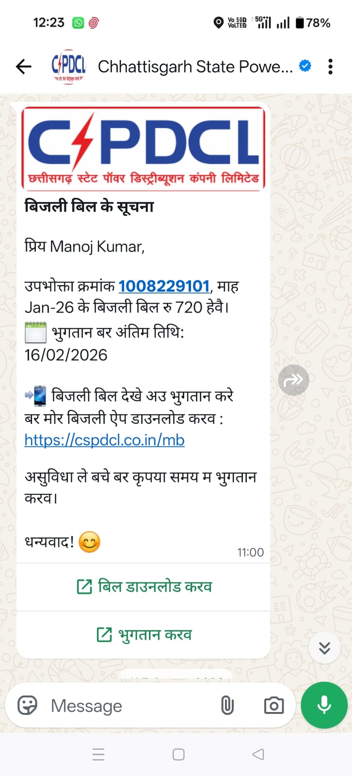 रायपुर। डिजिटल सेवाओं के बढ़ते उपयोग के बीच प्रदेश के बिजली उपभोक्ताओं में मातृभाषा छत्तीसगढ़ी के प्रति विशेष लगाव दिखाई दे रहा है। छत्तीसगढ़ स्टेट पॉवर कंपनीज की डिजिटल सेवाओं में बड़ी संख्या में उपभोक्ता अब छत्तीसगढ़ी भाषा में सूचना प्राप्त करना पसंद कर रहे हैं, जो स्थानीय भाषा के प्रति बढ़ते विश्वास और अपनत्व को दर्शाता है।