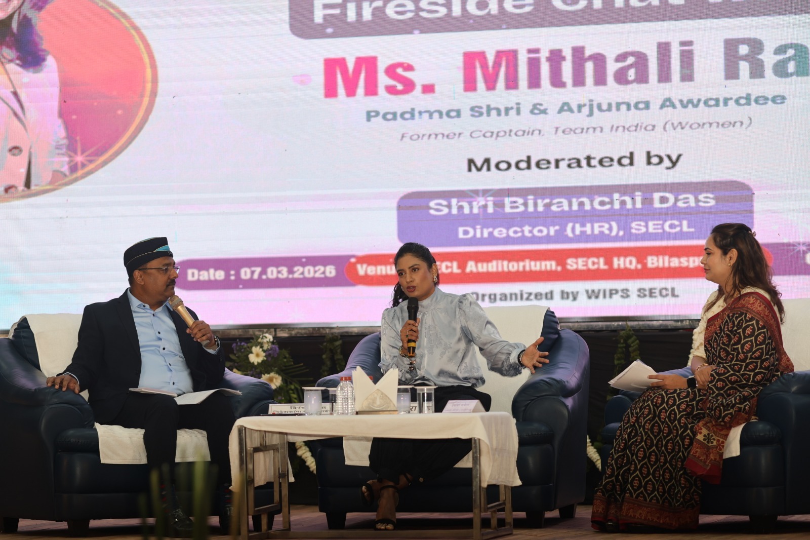 इस अवसर पर आयोजित फायरसाइड चैट में पद्मश्री, अर्जुन पुरस्कार से सम्मानित एवं भारतीय महिला क्रिकेट टीम की पूर्व कप्तान मिताली राज ने अपने अनुभव साझा किए। इस संवाद का संचालन एसईसीएल के निदेशक (मानव संसाधन) श्री बिरंची दास ने किया।