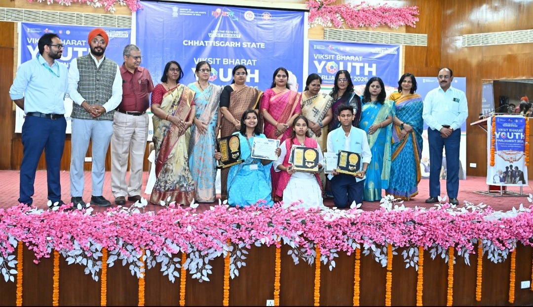 विकसित भारत युवा संसद में बिलासपुर की आरती कुमारी प्रथम, गरियाबंद की हर्षिता यादव द्वितीय और दुर्ग के दीपांशु नेताम तृतीय
