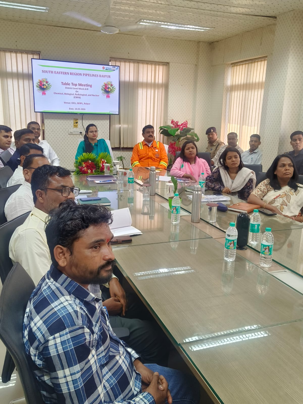 रायपुर। इंडियन ऑयल कॉर्पोरेशन लिमिटेड (IOCL) के दक्षिण पूर्वी क्षेत्र पाइपलाइन (SERPL), रायपुर में केमिकल, बायोलॉजिकल, रेडियोलॉजिकल एवं न्यूक्लियर (CBRN) आपदा प्रबंधन की तैयारी के संबंध में एक टेबल-टॉप बैठक आयोजित की गई। यह बैठक 11 मार्च 2026 को IOCL-SERPL, रायपुर में प्रस्तावित जिला स्तरीय CBRN मॉक ड्रिल की तैयारी और विभिन्न विभागों के बीच समन्वय स्थापित करने के उद्देश्य से आयोजित की गई। बैठक की अध्यक्षता एसडीएम आरंग श्रीमती अभिलाषा पैकरा ने की। उन्होंने आपातकालीन परिस्थितियों में सभी विभागों के बीच बेहतर समन्वय, त्वरित प्रतिक्रिया और पूर्व तैयारी के महत्व पर प्रकाश डाला।