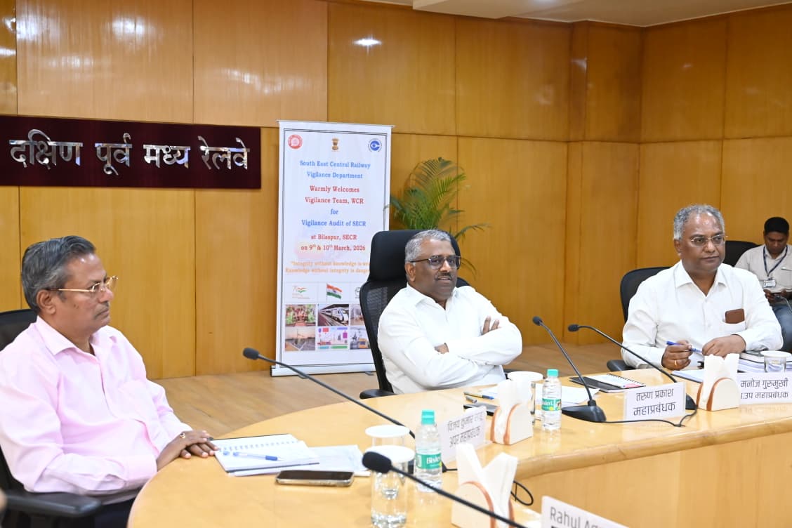 बिलासपुर। क्षिण पूर्व मध्य रेलवे, मुख्यालय, बिलासपुर में इंटर-ज़ोनल सतर्कता ऑडिट के अंतर्गत एक महत्वपूर्ण इंटर-ज़ोनल सतर्कता ऑडिट समीक्षा बैठक का आयोजन किया गया। यह ऑडिट पश्चिम मध्य रेलवे (डब्ल्यूसीआर), जबलपुर की सतर्कता टीम द्वारा किया गया।
