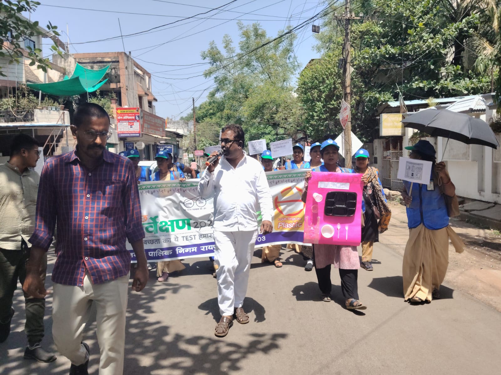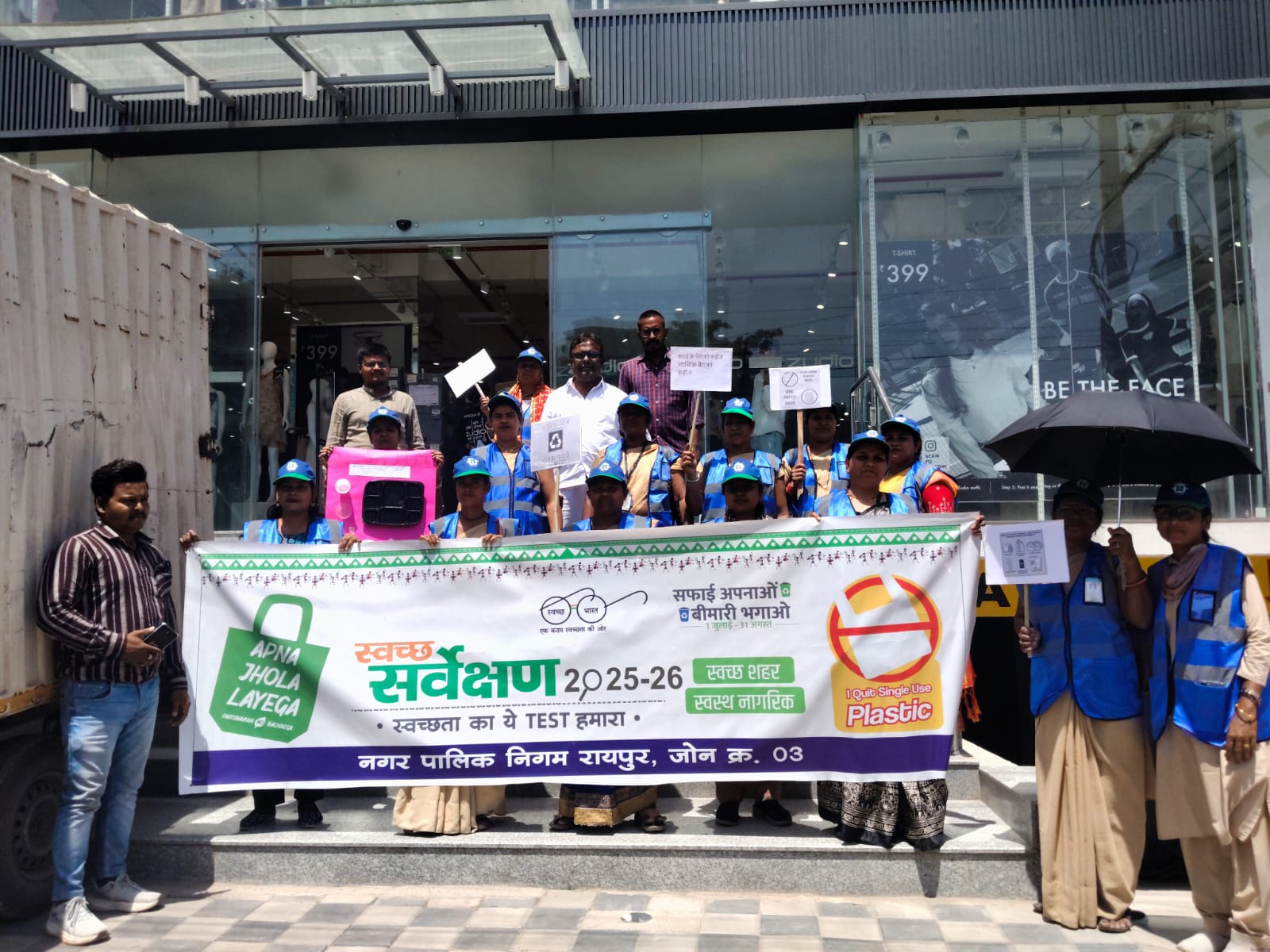 रायपुर। रायपुर नगर पालिक निगम की महापौर श्रीमती मीनल चौबे के निर्देश पर स्वच्छ सर्वेक्षण 2026 के अंतर्गत सिंगल यूज प्लास्टिक पर प्रभावशील प्रतिबंध को लेकर नगर निगम जोन 3 स्वास्थ्य विभाग द्वारा नगर निगम अपील समिति के सदस्य और शंकर नगर वार्ड क्रमांक 30 के पार्षद श्री राजेश गुप्ता के नेतृत्व में शंकर नगर में बाजारों और व्यवसायिक क्षेत्रों में जनजागरण अभियान व्यापारियों के मध्य चलाया गया।