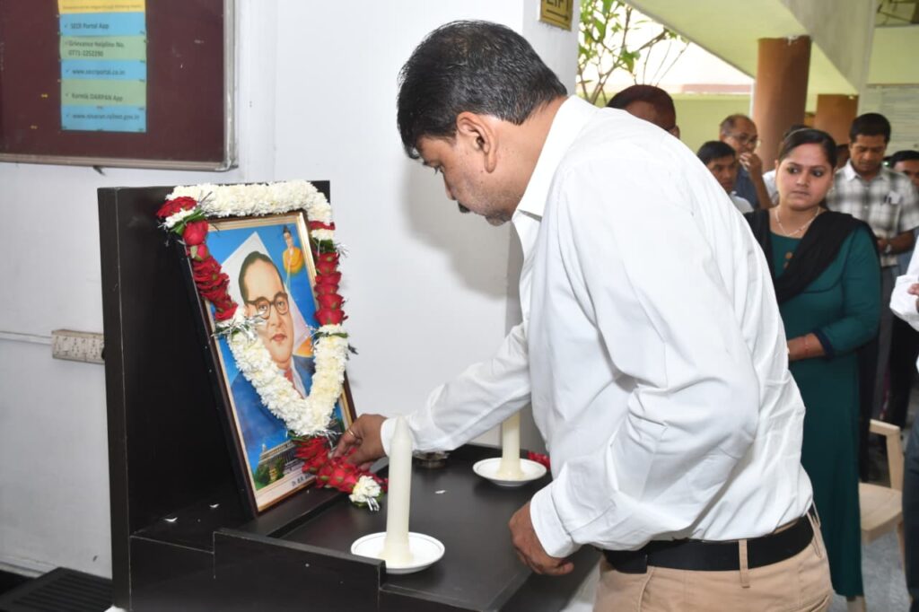 रायपुर । दक्षिण पूर्व मध्य रेलवे के रायपुर रेल मंडल में भारत रत्न बाबा साहब डॉ. भीमराव अम्बेडकर का 135वां जन्म दिवस 14 अप्रैल  को अवकाश होने के कारण 15 अप्रैल  को मनाया गया । कार्यक्रम मे मंडल रेल प्रबंधक श्री दयानद ने भारत रत्न बाबा साहेब डॉ. भीमराव अम्बेडकर के चित्र पर माल्यार्पण किया।