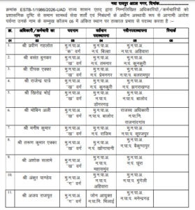 नगरीय प्रशासन एवं विकास विभाग नवीन पदस्थापना