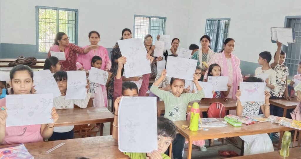 महाराष्ट्र मंडल के संत ज्ञानेश्वर विद्यालय में चल रहे समर कैंप में अंकुर शुक्ला ने सिखाया गोंड आर्ट