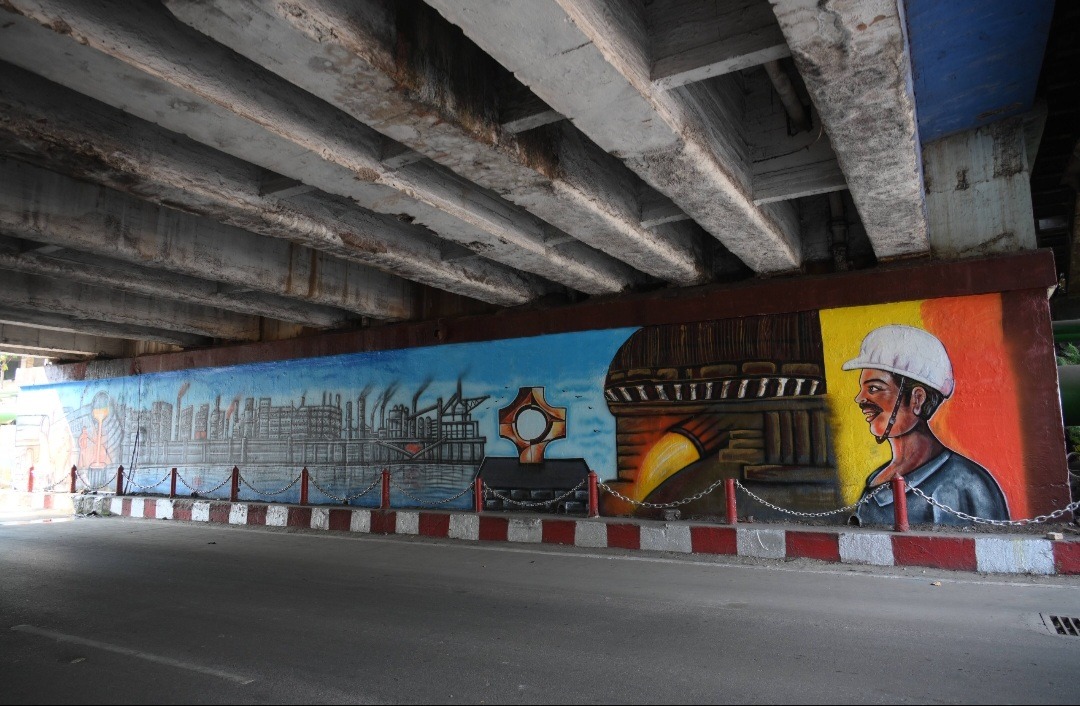 इसी क्रम में सीईडी विभागाध्यक्ष एवं महाप्रबंधक (सीईडी) श्री राकेश पांडेय ने जानकारी दी कि फाउंड्री सर्कल से आरसीएल टर्निंग तक दूसरी वॉल पेंटिंग विकसित की गई है, जिसमें छत्तीसगढ़ की स्थानीय कला को सुरक्षा विषयों के साथ संयोजित किया गया है। इस पहल के पीछे उद्देश्य यह है कि संयंत्र में कार्यरत कर्मी इन चित्रों के माध्यम से एक ओर सुरक्षा के प्रति जागरूक हों, वहीं दूसरी ओर उन्हें कार्यस्थल पर सकारात्मक और प्रेरणादायक वातावरण का अनुभव भी हो।