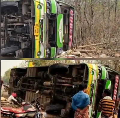 यात्री बस अनियंत्रित होकर पलटी 3 गंभीर, एक यात्री का हाथ कटकर अलग हुआ