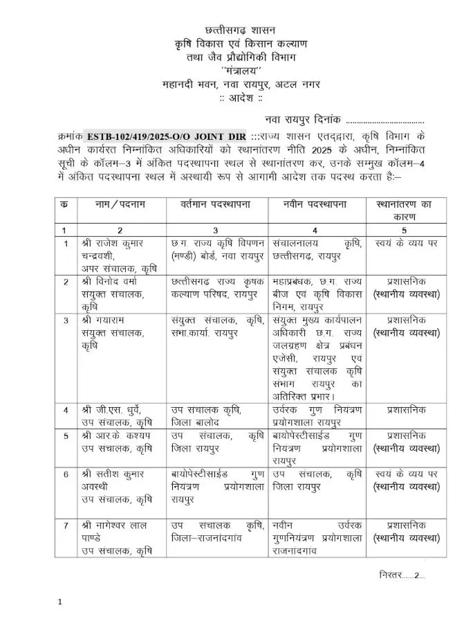 रायपुर। कृषि विकास एवं किसान कल्याण तथा जैव प्रौद्योगिकी विभाग ने 35 अधिकारियों का तबादला कर दिया है। उक्त आदेश...